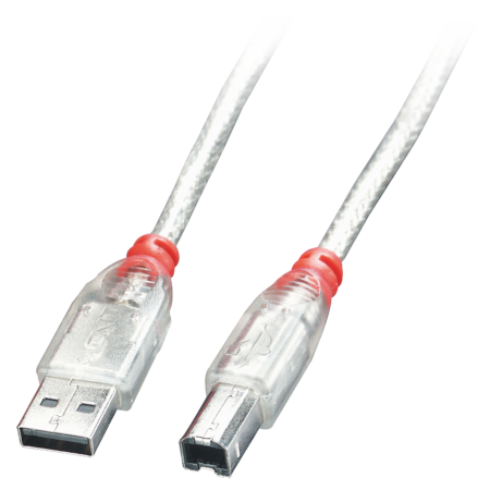 Lindy USB 2.0 tips A uz B savienotājkabelis, 5m, caurspīdīgs