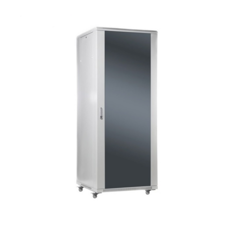 Grīdas skapis 42U 600x800mm ar stikla durvīm un atveramiem sāniem; pelēks (RAL7035), izjaukts